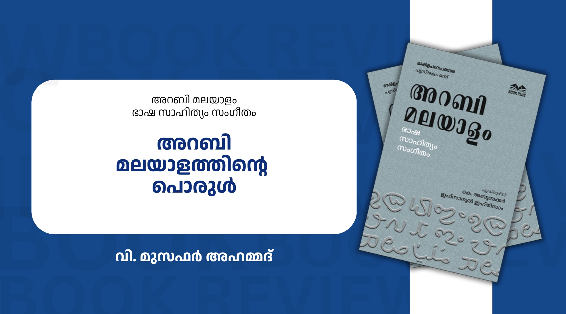 അറബി മലയാളം ലിപി മാത്രമാണോ, ഭാഷയാണോ, രഹസ്യ വിനിമയ രീതിയാണോ, സാംസ്ക്കാരിക അവശേഷിപ്പാണോ? ഇങ്ങിനെയുള്ള നിരവധി ചോദ്യങ്ങൾ സാധാരണ നിലയിൽ ഉണ്ടാകാറുണ്ട്. ഭാഷയെക്കുറിച്ച് നടക്കാറുള്ള ചർച്ചകളിൽ അറബി മലയാളവും ജൂത മലയാളവും കടന്നു വരുന്നത് പൊതുവിൽ കുറവാണ്, മിക്കപ്പോഴും ഇല്ല എന്നു തന്നെ പറയാം. കേരളത്തിൽ നടക്കുന്ന ചർച്ചകൾ മിക്കപ്പോഴും മാനക മലയാളത്തെച്ചുറ്റിപ്പറ്റി മാത്രമാണ് എന്നു പറഞ്ഞാൽ അതിൽ വലിയ അതിശയോക്തിയില്ല. എന്നാൽ കേരളത്തിൽ വിവിധ മലയാളങ്ങളും ആദിവാസി ഭാഷകളും ഉണ്ടെന്ന നിലയിലേക്ക് ഭാഷാ ചർച്ചയിൽ മുഖ്യധാരയിൽ ചെറിയൊരു മാറ്റം പ്രത്യക്ഷപ്പെട്ടത് സമീപകാലത്തു മാത്രമാണ്. ഇന്ന് നാം കേരളം എന്നു വിളിക്കുന്ന പ്രദേശത്തെ ആദ്യ സാക്ഷര സമൂഹം അറബി മലയാളത്തിലാണ് സംഭവിച്ചതെന്ന നിരീക്ഷണം അടുത്ത കാലത്ത് ഡോ.എം. ശ്രീനാഥൻ മുന്നോട്ടു വെച്ചിരുന്നു. ഈ പശ്ചാത്തലത്തിൽ അറബി മലയാളം ഭാഷ, സാഹിത്യം, സംഗീതം എന്ന പുസ്തകം (എഡിറ്റർമാർ: കെ.അബൂബക്കർ, ഇഹ്സാനുൽ ഇഹ്തിസാം: പ്രസാധനം: ബുക്പ്ലസ്) വലിയ പ്രാധാന്യം നേടുന്നുണ്ട്്. 11 പേരുടെ പ്രബന്ധങ്ങളാണ് 330 പേജുള്ള പുസ്തകത്തിലുള്ളത്. ഖുർആൻ/ഇസ്ലാം/പ്രവാചക വിജ്ഞാനീയം എന്നതിനൊപ്പം അറബി മലയാളത്തിന്റെ മറ്റു സഞ്ചാര പഥങ്ങളെക്കൂടി അടയാളപ്പെടുത്താൻ കഴിഞ്ഞു എന്നതാണ് പുസ്തകത്തെ കൂടുതൽ മൗലികമാക്കുന്നത്.